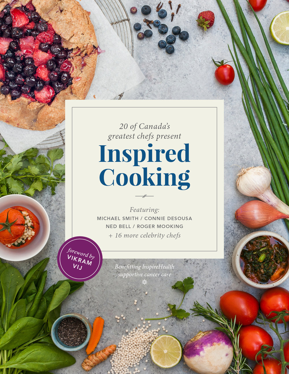 A charity cookbook for InspireHealth with the purpose of raising money to enhance the lives of those living with cancer. The storytelling cookbook features 21 of Canada's greatest chefs, journalists, nutritionists and healthcare providers.